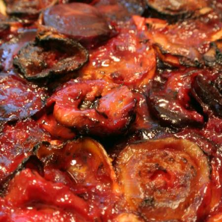 Kalkkunan rintafilee salvia-pekonikääreellä ja punajuuri-vuohenjuustopaistos